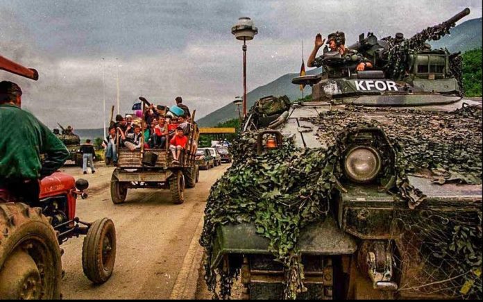 KFOR-i, misioni paqeruajtës i udhëhequr nga NATO-ja, filloi dislokimin më 12 qershor, 1999. Fillimisht përbëhej nga rreth 50.000 trupa, për të arritur në 4.767 trupa sot, nga 33 vende të botës.