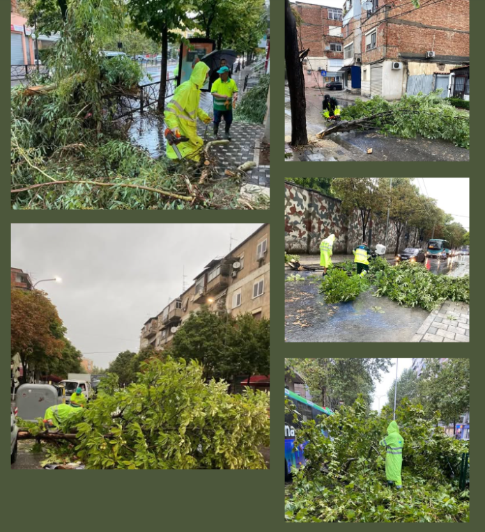 Pas stuhisë së fuqishme që goditi kryeqytetin ditën e sotme, Drejtoria e Përgjithshme e Pastrim Gjelbërimit (DPPGJ) e Bashkisë Tiranë ka qenë në gatishmëri të plotë, duke ndërhyrë me shpejtësi për të liruar rrugët e bllokuara nga pemët e rrëzuara.